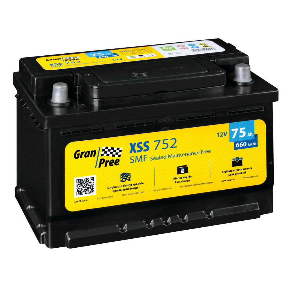 La batteria auto Gran Pree 12V 75Ah SMF LB3 è progettata per garantire prestazioni elevate e affidabilità nel tempo. Grazie alla tecnologia Matrix Press, questa batteria previene surriscaldamenti, sovraccarichi e cortocircuiti, assicurando sicurezza e lunga durata.