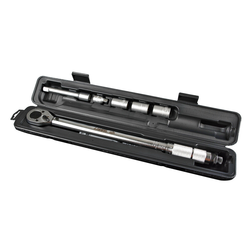 Perfetta per meccanici e appassionati del fai-da-te, questa chiave dinamometrica assicura un serraggio accurato evitando danni a bulloni e componenti. Il kit completo consente di affrontare diverse esigenze di lavoro con un unico strumento versatile e di qualità.