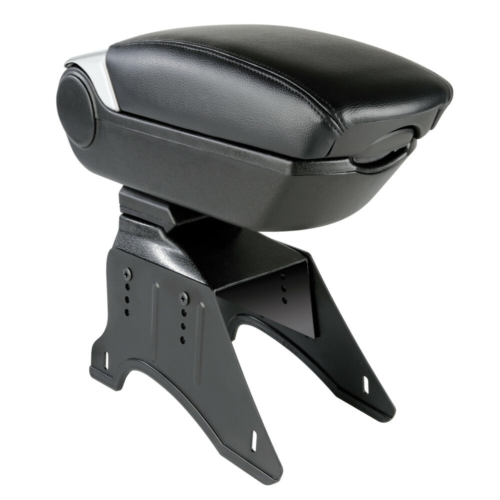 Questo bracciolo è fornito con una base di appoggio universale per una facile installazione, oltre a essere compatibile con attacchi specifici da ordinare separatamente per un montaggio perfetto su qualsiasi modello di veicolo. Il piano di appoggio è morbido, scorrevole e ribaltabile per adattarsi al massimo alle esigenze del guidatore o del passeggero. Il rivestimento esterno in Skeentex con cuciture a tre fili garantisce una lunga durata e un aspetto elegante. L’ampio vano portaoggetti interno consente di tenere a portata di mano piccoli oggetti e accessori.