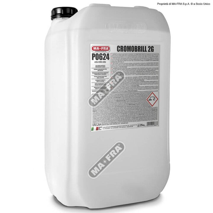 Mafra Cromobrill 2G è il prodotto ideale per eliminare efficacemente le tracce di ossidazione da ogni tipo di superficie metallica, garantendo una pulizia profonda e una finitura brillante. La sua azione energica a ampio spettro lo rende indispensabile per la manutenzione di autobotti, autotreni, cisterne in acciaio inox, autocarri e container, soprattutto dopo lunghe soste in ambienti ferroviari.