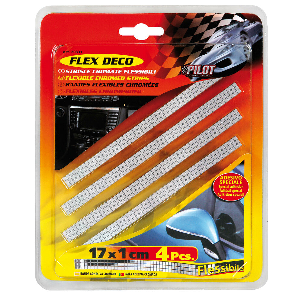 Le strisce cromate flessibili Pilot Flex Deco sono l’accessorio ideale per personalizzare e proteggere il tuo veicolo con stile. Disponibili in confezione da 4 pezzi, ogni striscia misura 170x10 mm, perfetta per adattarsi a diverse superfici interne ed esterne. Grazie alla loro flessibilità, queste strisce sono facili da modellare su porte, specchietti, cruscotti, scooter e ciclomotori, garantendo un’applicazione perfetta e durevole. Realizzate con materiali di alta qualità, resistono agli agenti atmosferici e all’usura, mantenendo a lungo il loro esclusivo effetto cromato lucidissimo.