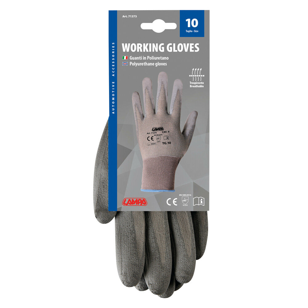 I guanti Lampa in poliuretano sono realizzati con un filato elastico di alta qualità, dotati di palmo ricoperto in poliuretano che garantisce un'ottima aderenza e una straordinaria sensibilità tattile. La taglia 10 è ideale per chi cerca un guanto confortevole, resistente e funzionale da usare in vari contesti lavorativi e quotidiani.