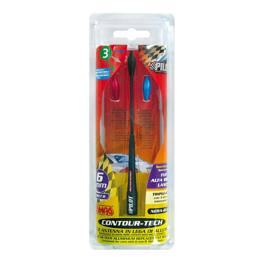 Lo stelo antenna Pilot Contour-Tech è progettato per garantire una ottima ricezione del segnale radio su veicoli Fiat, Lancia e Alfa Romeo. Realizzato in lega di alluminio, combina leggerezza e robustezza. Il diametro di 6 mm lo rende ideale per sostituire o aggiornare l’antenna originale, migliorandone la funzionalità.